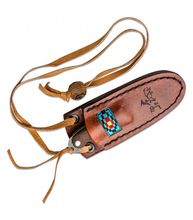 The Blue River Neck Knife is a compact and sturdy piece of art. This small fixed blade knife rides over your neck in a beautiful and uniquely styled leather sheath. A sweet set-up you can have with you all the time.