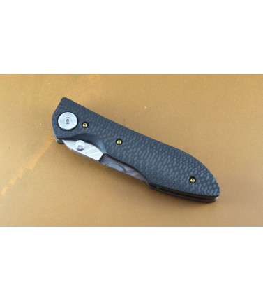 $550.00Owen Wood Custom Linerlock. Features a 2 5/8" Wharncliffe blade of ATS-34 Stainless. Single thumb stud. Beautiful black Carbon Fiber handle scales with Silver Twill Carbon fiber bolster. Owen Wood is a highly sought after custom maker whose highly embellished offerings are running between $3000.00 and $6000.00....WOW! FEATURES AND SPECIFICATIONS: --Blade Steel: ATS-34 Stainless --Blade Style: Wharncliffe --Blade Grind: Hollow Grind --Blade Finiish: Hand polished --Edge Type: Plain Edge --Handle Material: Carbon Fiber with Silver Twill Carbon Fiber Bolsters --Lanyard Hole: No --Pocket Clip: No --Frame/Liner: Titanium --Action: Manual - Manual --Opener: Single Thumbstud --Lock: Titanium Linerlock --Brand: Owen Wood Custom --Use: everyday Carry (EDC) --Blade Thickness: 0.108" --Cutting Edge: 2 1/4" --Blade Length: 2 5/8" --Handle Length: 3 1/2 " --Overall Length: 6 1/4" --Handle Thickness: 0.482" Country of Origin: USA I am told this is likely an early piece of his custom work....not verified tho. Nice chance to get an early piece from a top-tier custom maker. -