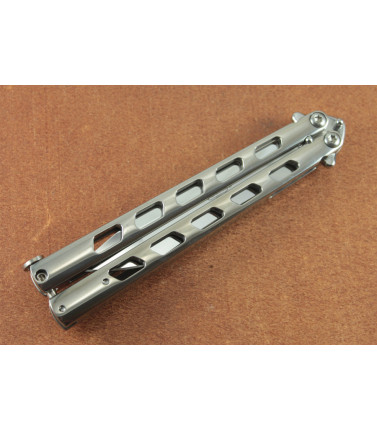 PRE-OWNED Darrel Ralph DDR Custom Gemini Titanium Bali Butterfly Knife. An absolute beauty! Mirror polished Grade 5 billet Solid Titanium handles. Mirror polished CPM 20CV Hollow ground clip point blade. Titanium spring latch that is reversable or removable. Custom polished titanium pocket clip. Designed with blade bushings for smooth flipping. Includes original packaging. 4 1/4" blade length (to pin) USA