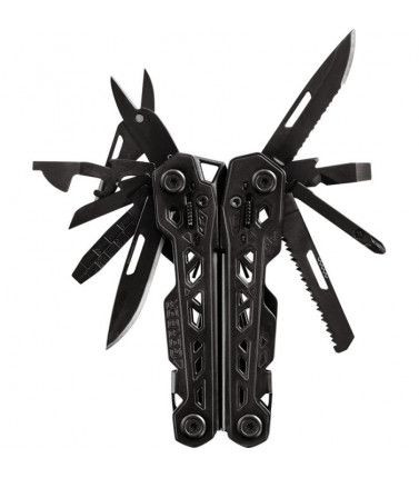 FEATURES:--Easily accessible, one-hand opening design--Solid stainless steel construction with BLACH finish--Saf.T.Plus locking knife and tools--Ballistic nylon sheath included