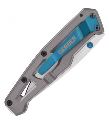 $29.97The Gerber Paralite Framelock features a 3 1/8" flat ground plain edge stainless steel blade. Gray stainless steel handle with blue pocket clip. Blue thumb stud. 4 1/8" closed. PRC