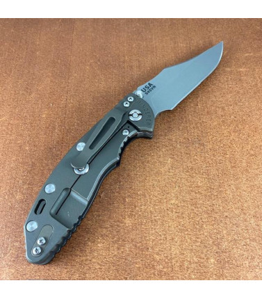 $425.00Direct from Rick Hinderer, this XM-18 3.5" Flipper features a 3 1/2" plain edge dark stone washed Spanto blade of S45VN Stainless steel. Working finish titanium frame. Black G-10 handle scale. Tri-Way pivot system. Dual thumbstuds. Framelock with Steel insert. Tip-up or tip-down reversible titanium pocket clip.
