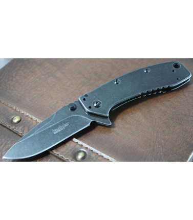 $53.97The popular Cryo II gets a BlackWash finish. BlackWash gives a knife that already-broken-in looklike your favorite pair of well worn jeans. But that's not all. It also provides an extra measure of protection for the metal and helps hide any additional scratches you may put on the knife during normal use. The Cryo II is the result of collaboration between Rick Hinderer and the design and production engineers at Kershaw. The original Cryo (model 1555TI) was selected as a Blade Show Best Buy and was chosen as Mens Journal Approved Gear. Like all Cryos, this BlackWashed version is equipped with SpeedSafe assisted opening for smooth and easy one-handed opening. Access it with the built-in flipper or thumbstud. The blade steel is heat treated to Kershaws exacting standards. The handle is stainless steel with a sturdy frame lock to securely lock the blade open during use. A Hinderer lockbar stabilizer ensures the lock doesnt over-extend. For maximum carry flexibility and discretion, the BlackWash Cryo II includes a four-position deep-carry pocketclip. Features and Specs: Flipper, Thumbstud SpeedSafe® assisted opening Frame lock, lock bar stabilizer 4-position deep-carry pocketclip (right/left; tip-up/down) Designed by Rick Hinderer Stainless steel blade, black-oxide BlackWash finish Handle: 410, black-oxide BlackWash finish Blade: 3.4 in. (8.6 cm) Closed: 4.4 in. (11.2 cm) Weight: 5.5 oz. (155.9 g) -