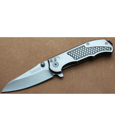 $89.97Features a plain edge Sandvik 14C28N/CPM-D2 Composite blade. Stainless steel handles. Framelock. Speed-Safe Assisted Opening. Dual thumbstuds. Finger-flipper. Adjustable pocket clip for tip-up or tip-down carry. 3" blade. 4" closed. USA -