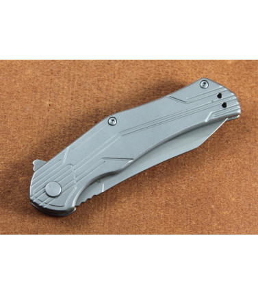 $27.97Kershaw 1380 Husker Kershaw pulled out all the stops to make the Husker a unique EDC. First of all, while it has a substantial feel, it is also very slim, so its comfortable in the hand and in the pocket. It features an upswept blade with plenty of belly for excellent slicing. The all-steel handle has a machined, industrial pattern for enhanced grip. This frame lock knife also features one of the most well-integrated over-travel stops youve ever seen. An over-travel stop prevents the frame lock from over extending as you close the knife; this one blends flawlessly with the overall look of the handle. FEATURES: --Type: Assisted Opening Folder --Blade Style: Trailing Point --Blade Edge: Plain --Opening Action: Assisted SpeedSafe® --Opens With Flipper --Lock Type: Frame lock --Pocketclip: Reversible (right/left, tip-up) --Handle Color: Silver --Hardware: Bead-blasted steel pivot nut, bead-blasted steel pocketclip, beasd-blasted steel tube spacers, bead-blasted steel screws SPECIFICATIONS: --Blade Length: 3 in. (7.6 cm) --Blade Steel 8Cr13MoV --Blade Finish/Coating: Stonewashed finish --Closed Length: 3.8 in. (9.9 cm) --Handle Material: Stainless steel --Handle Finish/Coating: Stonewashed finish --Handle Thickness: 0.36 in. (9 mm) --Overall Length: 6.9 in. (17.6 cm) --Weight: 3.3 oz. (96 g) --Brand: Kershaw --Model Name: Husker --Model Number: 1380 --Item Number: KS1380 --Country of Origin: PRC -