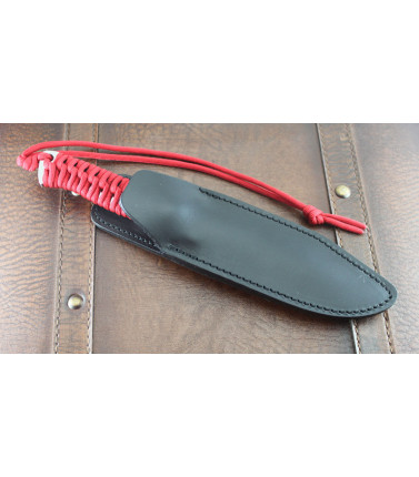 $290.00(0003129ROT Imported direct to us from the Klotzli shop in Burgdorf. Klotzli Model 7 Fixed blade with Red Paracord wrapped handle. The blade is polished and the handle wrapped in red parachute cord. The ideal companion for adventures in nature! --Blade: Polished and and-ground hollowgrind Clip point. --Blade steel: 440C stainless. --Handle: Red parachute cord wrapped. --Sheath: Black leather with clip Length: 8 3/4" - 225 mm Weight: 125g Design: Chris Dahl SWISS MADE -
