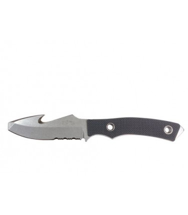 $265.00Imported by us from the Klotzli factory in Switzerland. KLOTZLI Loadmaster Fixed Blade The Loadmaster is a strong and compact field knife that can tackle most any challenge - in the field or at home. The Klotzli LoadMaster knife was designed by Samuel Klotzli according to the needs of the Swiss Air Force's Loadmasters. This full tang knife is 7 1/2" overall with a 3" blade. It is hand ground of stonewashed Bohler N690 stainless steel. The LoadMaster's blade is 1/8" thick and weighs only 2 1/4 ounces. There are ribs on top and a finger groove handle for a secure grip. This knife features a squared off blunt tip for chisling/flat blade screwdriver, a partially serrated cutting edge, a belt/line cutter, and a glass breaker pommel. The knife has a Stonewash finish and comes with textured black micarta handle scales. For carrying, a black kydex sheath is provided. It can be conveniently carried as a neck knife, boot knife, or on a belt or pack when used with an adapter