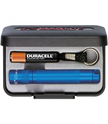 $14.95Maglight Mini Mag Blue Body High-intensity adjustable light beam (Spot to Flood) Rugged, machined aluminum construction with knurled design Anodized inside and out for improved corrosion resistance Water and shock resistant Spare lamp safely secured inside the tailcap Converts quickly to a freestanding candle mode. Includes Battery AA-CellWe recommend additional batteries. Click Here to find batteries for this model.