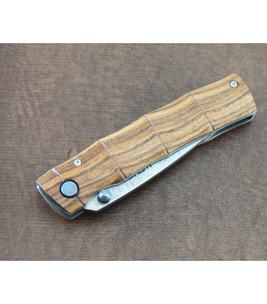 $94.97Mcusta 0013 3Basic Series Folder. VG-10 Stainless steel blade (RC 59-60) with dual thumbstuds. Stainless steel liner. Stainless Steel Liner-lock Elegant design with contoured finger groove Ebony Wood handles. Specially designed Teflon washer system. Hand finished. SELECT SPECS: --Blade Steel: VG-10 --Hardness: 59-60 RC --Blade Style: Spear Point --Blade Grind: Hollow Grind --Blade Finish: Satin --Edge Type: Plain Edge --Blade Thickness: 0.12" --Cutting Edge: 3 1/4" --Blade Length: 3 1/4" --Handle Length: 4 3/8" --Overall Length: 7 1/2" --Handle Thickness: 0.55" --Handle Material: Sculpted Select Ebony Wood --Lanyard Hole: Yes --Pocket Clip: No - Pouch included --Frame/Liner: Stainless Steel --Weight: 3.3 oz --Action: Manual --Opener: Dual Thumbstuds --Lock: Liner-lock - Stainless Steel --Brand: Mcusta --Model Name: MC-13 --Model Number: 0013 --Use: everyday Carry - EDC --Country of Origin: Japan - Seki City NOTE: We variations in the Ebony Wood used by Mcusta. It has varried from Black to Dark Brown with Black highlights. Give us a call if you have a preference and we will see what we have available.