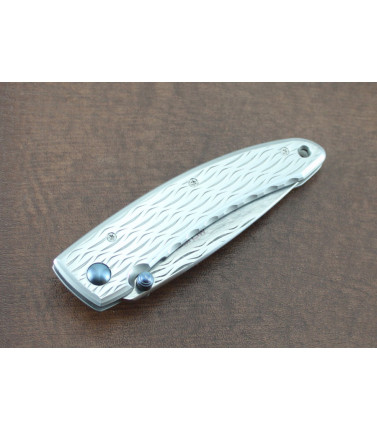 $99.50Mcusta 0111D Nami Small Framelock features stainless steel handles with decorative wave styling on the stainless handles and blade flats. 33 Layer VG-10 core Damascus steel plain edge blade. Dual thumb studs. Pocket clip. Lanyard hole. SELECT SPECS: --Blade Steel: 33 Layer VG-10 Core Damascus --Hardness: 59-60 RC --Blade Style: Spear Point --Blade Grind: Hollow Grind --Blade Finish: Damascus --Edge Type: Plain Edge --Blade Thickness: 0.11" --Cutting Edge: 2 1/2" --Blade Length: 2 3/4" --Handle Length: 3 5/8" --Overall Length: 6 3/8" --Handle Thickness: 0.325" --Handle Material: Stainless Steel with Wave Motif --Lanyard Hole: Yes --Pocket Clip: Yes - Tip down carry --Frame/Liner: Stainless Steel --Weight: 2.62 oz --Action: Manual --Opener: Dual Thumbstuds - Anodized --Lock: Frame-lock - Stainless Steel --Brand: Mcusta --Model Name: Nami - Small --Model Number: 0111D --Use: everyday Carry - EDC --Country of Origin: Japan - Seki City -