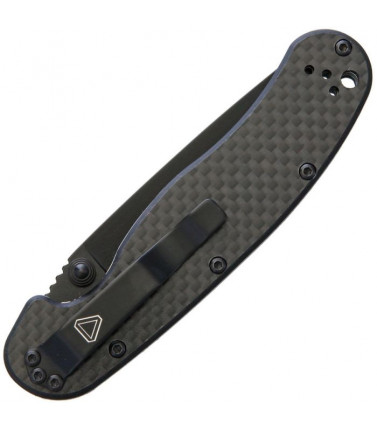 $48.99This Ontario Rat II folder features a black 3" full flat ground plain edge blade of D2 tool steel. Smooth Carbon Fiber scales front and back over Stainless Steel frame. Linerlock. Dual thumbstuds. Pocket clip. Handle drilled and tapped on all four sides for right of left tip-up or tip-down carry. 4 1/16" closed. Taiwan