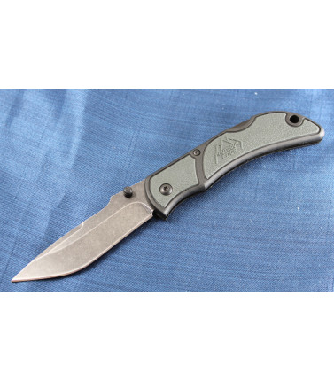 $17.50This ultra-light and reliable lock-back folder is the perfect everyday carry knife. The 3.3" non-reflective BlackstoneTM coated 8Cr13MoV stainless blade is precisely heat treated and hand finished shaving-sharp for superior edge retention and performance. Double molded Zytel® handles feature Gray rubberized TPR inserts for a secure, non-slip grip, even when wet. The double-sided thumb stud allows easy, one-hand opening and the pocket clip contours perfectly with the handle so it feels like an integral part of the grip. PRC -