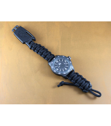$54.95Outdoor Edge Para-Claw CQD Watch Zinc Alloy LARGE. Outdoor Edge has redefined tactical carry with the ParaClaw CQD Watch. This precisely crafter timepiece features a reliable SEIKO quartz movement in a rugged Zinc Alloy with a Black PVD Titanium coating, Mineral Glass. The paracord built wristband features the ParaClaw buckle that houses a 1.5" stainless steel hawkbill blade that carries discretely and can be drawn quickly and easily in any situation. SELECT SPECS: --Seiko quartz movement --Water resistant to 100ft/30m --Mineral Glass --Tough Zinc Alloy housing --Black Titanium PVD coating. --Lume indexed display --Paracord band with ParaClaw buckle. --Approx 9" total length. PRC -
