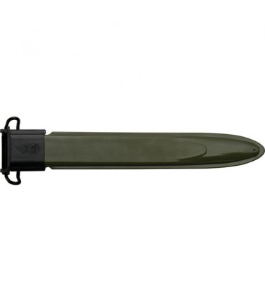 $39.9714.25" overall. 9.75" black stainless blade. Black grooved handle. Stainless guard and stainless pommel. OD green hardshell belt sheath. Rifle attachment system. PRC