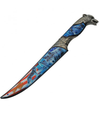 $39.97Features 6 1/4" high carbon damascus blade. Horn handles. Aluminum guard and pommel.