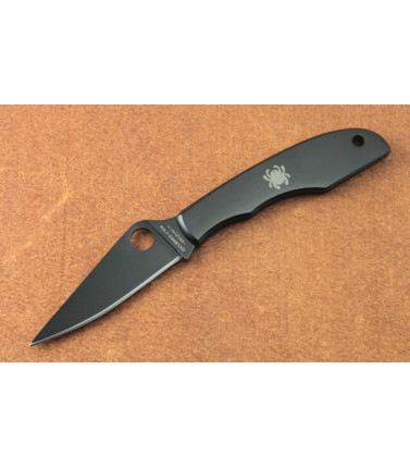 $32.20Spydercos micro-sized slipjoints are fully functional, impressively sharp folding knives that are very much at home on a keychain. Their stainless steel handles are the perfect palette for engraving or other embellishment and their Trademark Round Holes are much more user friendly than traditional nail nicks. The Grasshopper's size is closest to that of a true penknife with its blade over two-inches. Its PlainEdge Sandvik 12C27 stainless steel blade stays open when you're cutting, held by resistant pressure at the knife's pivot area. Grasshopper handles are chamfered with no squared-off edges to dig or bite into a gripping hand. The handle is also stainless steel with a laser engraved Spyderco bug. This variant features a durable black oxide coating on the blade and handle. Handle lanyard-hole welcomes a chain for wear around a neck or a keychain. Specs: Overall Length: 5.09" Blade Length: 2.27" Weight: 1.3oz Lovk Type: Slipjoint Pocket Clip: None Handle Material: Black Oxide coated stainless steel. Blade Steel: Sandvik 12C27 Country of Origin: China -