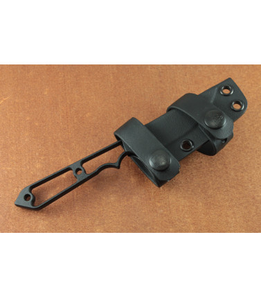 The darkened Micarta scales are screwed onto the handle and a large cord holder is accentuated at the back of the handle. The handles are designed and built for a positive grip and for extended periods of use. A simple and usable design is reinforced by a sturdy 3/16" thick blade and full tang handle. This is a knife that performs with excellence in the field and looks and feels like an old trusted friend, anywhere that you go.