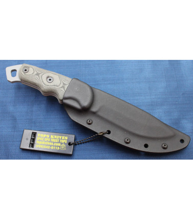 $139.97About 10 years of continual field use has proven this knife a fine and formidable companion in the Outdoors. Even young hunters are learning the many uses this knife has to offer in camp as well as On the Hunt. Honoring the famous Cochise. Cochise was one of the most famous Apache leaders, along with Geronimo. Cochise was the last great American Indian chief to die free and absolutely unconquered. SPECS: Blade Length: 4 1/2" O/A Length: 9 3/4" Cutting Edge: 4" Thickness: 3/16" Weight: 12oz Blade Color: Tactical Gray Blade Steel: 1095 High Carbon Alloy RC-58 Handle Material: Black Linen Micarta® Sheath: Kydex With a Rotating Steel Spring Clip Weight: 10.1oz Weight w/ Sheath: 13.0oz Mfg. Handcrafted in the USA -