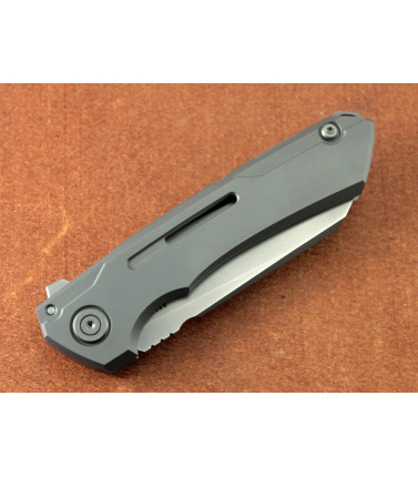 $289.00The WE Mini Buster is a well designed and expertly produced Flipper Framelock that is well suited for everyday carry. FEATURES AND SPECIFICATIONS: --Overall Length: 7.97" / 202.5mm --Blade Length: 3.43" / 87.1mm --Closed Length: 4.54" / 115.4mm --Blade Thickness: 0.16" / 4mm --Handle Thickness: 0.51" / 13mm --Weight: 4oz / 114g --Blade Material: CPM 20CV --Blade Hardness: 59-61HRC --Blade Grind: Flat --Blade Finish: Polished Bead Blast --Handle Material: 6AL4V Titanium --Handle Color/Finish: Gray --Back Spacer Material: 6AL4V Titanium --Back Spacer Color/Finish: Gray With Satin On The Spine --Pocket Clip: Tip-Up, Right Carry --Clip Material: 6AL4V Titanium --Screws Material: 6AL4V Titanium --Pivot Assembly: Caged Double Row Ceramic Ball Bearing --Locking Mechanism: Frame Lock --Brand: WE Knife --Model Name: Mini Buster --Model Number: 2003A --Item Number: WE2003A --Country of Origin: PRC