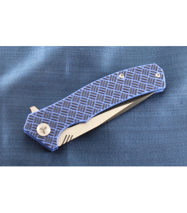 $125.80WE Knife 715D Ignition Flipper Framelock. Features a 3.5" two tone VG-10 stainless steel blade. Blue G-10 front scale. Stonewashed titanium back handle. Framelock with steel insert. Pocket clip. FEATURES AND SPECIFICATIONS: --Blade Steel: VG-10 Stainless --Blade Style: Spear Point --Blade Grind: Hollow Grind --Blade Finiish: Two-tone Stonewashed with Satin Flats --Edge Type: Plain Edge --Handle Material: Lightly Textured Blue G-10 with 6AL4V Titanium backside and Framelock --Lanyard Hole: Yes --Pocket Clip: Yes - Titanium - Reversable Tip up carry --Frame/Liner: 6AL4V Titanium --Action: Manual --Opener: Flipper and/or Thumbhole --Lock: Titanium Framelock with Steel Insert --Brand: WE Knife --Model Name: Ignition --Model Number: 715D --Use: everyday Carry (EDC) --Blade Thickness: 0.133" --Cutting Edge: 3 3/8" --Blade Length: 3 1/2" --Handle Length: 4 1/2" --Overall Length: 8" --Handle Thickness: 0.470" --Weight: 3.2 oz Country of Origin: PRC OTHER FEATURES: --6AL4V Titanium Screws and Pivot Cap --Ceramic Ball Bearing Washers --Includes hardware adjustment tool, cleaning cloth and zippered pouch.