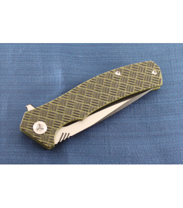 $99.99WE Knife 711B Blitz Flipper Linerlock. Features a 3.5" two-tone finished VG-10 stainless steel drop point blade. Textured Black and Green G-10 handle scales over dual nested steel liners. Pocket Clip oriented for right side tip-up carry. Includes polishing cloth and zippered pouch. FEATURES AND SPECIFICATIONS: --Blade Steel: VG-10 Stainless --Blade Style: Spear Point --Blade Grind: Hollow Grind --Blade Finiish: Two-tone Black with Satin Flats --Edge Type: Plain Edge --Handle Material: Textured Black and Green G-10 --Lanyard Hole: No --Pocket Clip: Yes - Titanium - Tip up carry --Frame/Liner: Dual Nested Black Stainless Steel. --Action: Manual --Opener Flipper --Lock: Stainless Linerlock --Brand: WE Knife --Model Name: Blitz --Model Number: 711B --Use: everyday Carry (EDC) --Blade Thickness: 0.121" --Cutting Edge: 3 1/2" --Blade Length: 3 1/4" --Handle Length: 4 1/2" --Overall Length: 7 7/8" --Handle Thickness: 0.491" --Weight: 4 oz Country of Origin: PRC OTHER FEATURES: --Stainless Steel Screws and Pivot Cap --Ceramic Ball Bearing Washers --Titanium Backspacer -