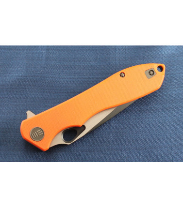 $125.80WE Knife 715A Ignition Framelock. Features a 3.5" two tone VG-10 stainless steel blade. Orange G-10 front scale. Stonewashed titanium back handle. Framelock with steel insert. Pocket clip oriented for right of left side tip-up carry. FEATURES AND SPECIFICATIONS: --Blade Steel: VG-10 Stainless --Blade Style: Spear Point --Blade Grind: Hollow Grind --Blade Finiish: Two-tone Black with Satin Flats --Edge Type: Plain Edge --Handle Material: Lightly Textured Orange G-10 with 6AL4V Titanium backside and Framelock --Lanyard Hole: Yes --Pocket Clip: Yes - Titanium - Reversable Tip up carry --Frame/Liner: 6AL4V Titanium --Action: Manual --Opener: Flipper and/or Thumbhole --Lock: Titanium Framelock with Steel Insert --Brand: WE Knife --Model Name: Ignition --Model Number: 715A --Use: everyday Carry (EDC) --Blade Thickness: 0.133" --Cutting Edge: 3 3/8" --Blade Length: 3 1/2" --Handle Length: 4 1/2" --Overall Length: 8" --Handle Thickness: 0.470" --Weight: 3.2 oz Country of Origin: PRC OTHER FEATURES: --6AL4V Titanium Screws and Pivot Cap --Ceramic Ball Bearing Washers --Includes hardware adjustment tool, cleaning cloth and zippered pouch. -