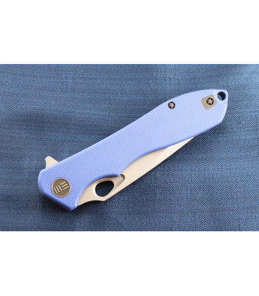 $99.99WE Knife 711A Blitz Flipper Linerlock with VG-10 Stainless Two Tone Blade and Blue/Black G-10 Handle Scales. A high quality reasonably priced pocket knife that is easy to carry. FEATURES AND SPECIFICATIONS: --Blade Steel: VG-10 Stainless --Blade Style: Spear Point --Blade Grind: Hollow Grind --Blade Finiish: Two-tone Black with Satin Flats --Edge Type: Plain Edge --Handle Material: Textured Black and Blue G-10 --Lanyard Hole: No --Pocket Clip: Yes - Titanium - Tip up carry --Frame/Liner: Dual Nested Black Stainless Steel. --Action: Manual --Opener Flipper --Lock: Stainless Linerlock --Brand: WE Knife --Model Name: Blitz --Model Number: 711A --Use: everyday Carry (EDC) --Blade Thickness: 0.121" --Cutting Edge: 3 1/2" --Blade Length: 3 1/4" --Handle Length: 4 1/2" --Overall Length: 7 7/8" --Handle Thickness: 0.491" --Weight: 4 oz Country of Origin: PRC OTHER FEATURES: --Stainless Steel Screws and Pivot Cap --Ceramic Ball Bearing Washers --Titanium Backspacer -