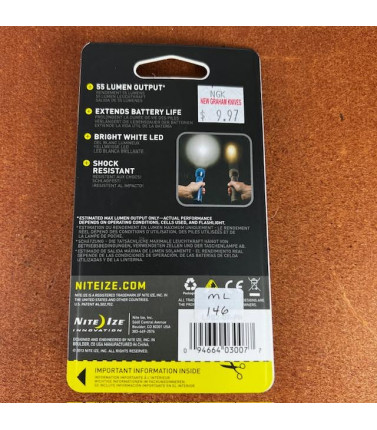 $7.95The Streamlight Black Nano light is one special keychain light. Lifetime LED bulb. 10 lumen output for 8 hours runtime on (4) LR41 button cell batteries (included). Small (1 7/16") and lightweight (0.36 ounce). Imported.We recommend additional batteries. Click Here to find batteries for this model.