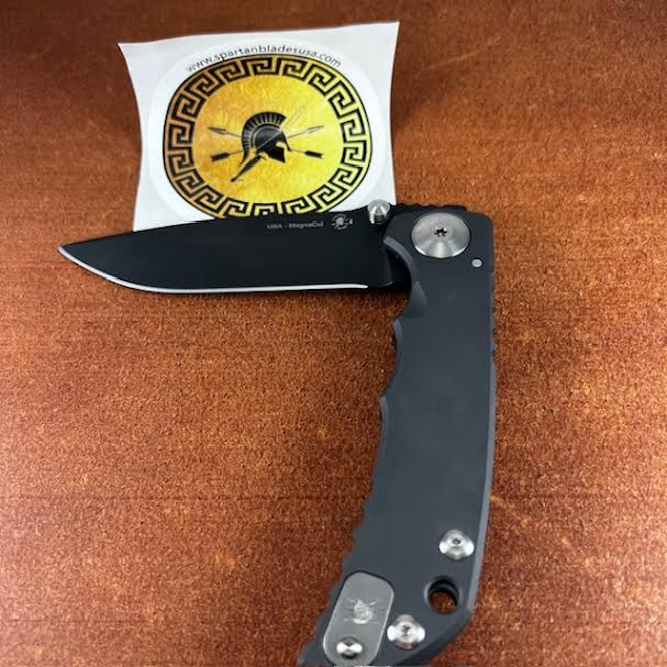 The Spartan Harsey Folding Knife is comprised of a highly reliable and durable frame lock design. Aside from the knife’s pivot, blade, and stop pin, this folding knife is made from 100% 6AL-4V titanium.