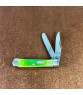 Case XX two blade Tiny Trapper with Barnboard Jig Lime Green Bone handles. Stainless steel Clip and Spey blades. 2 3/8" closed. USA