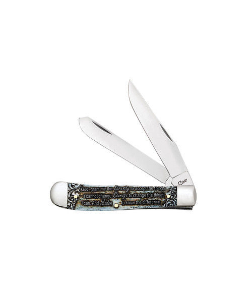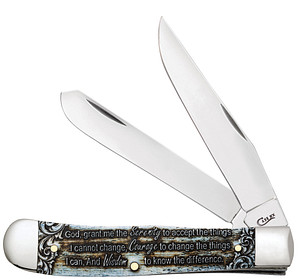 Case 38822 two blade full size Trapper (6254 SS) Smooth Color Wash Bone handle with Serenity Pray embellishment.